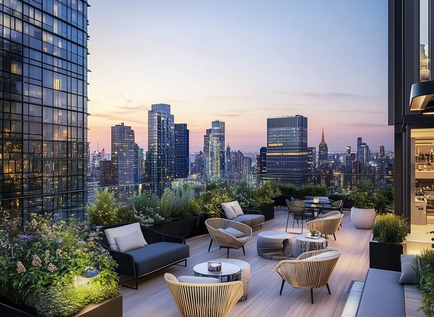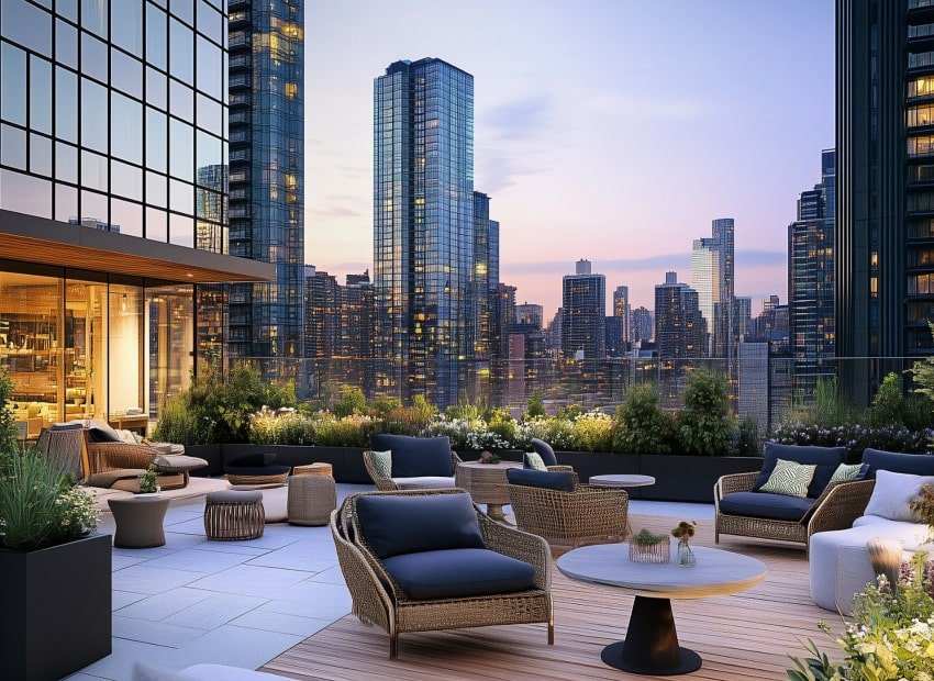 - Amenities: Gym, café, daycare, and rooftop event space.